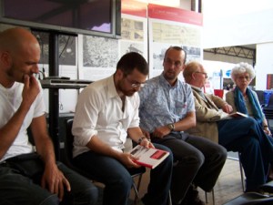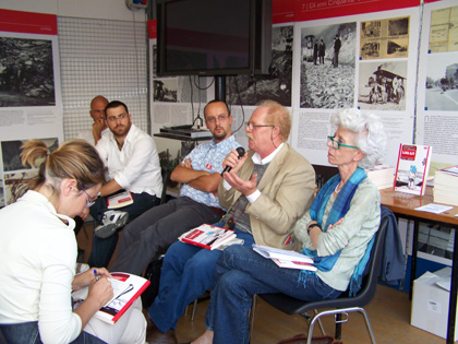 Una serata bellissima. Il libro, permettetemi l’immodestia, è venuto proprio bene. Stampato da dio, le finezze di Francesco risaltano a dovere. E tanti sono stati gli apprezzamenti in questi due giorni di chi l’ha già letto. All’incontro, Francesco Barilli, Mariangela Gritta Grainer e Roberto Scardova, tre persone meravigliose, combattive, appassionate e ricche dentro, hanno dato uno spessore che raramente ho visto quando si parla di fumetti. E il pubblico, nonostante la “concorrenza” di tanti eventi, tra cui la presenza di Fassino, è stato attento e partecipe. In tanti hanno seguito l’incontro dalla strada… passeggiando venivano catturati dalle belle parole di Mariangela o Roberto e restavano ad ascoltare. Ottima l’organizzazione della Festa e dell’Associazione Alpi, a cui vanno i miei sinceri ringraziamenti. Ecco qualche foto.