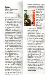 Sono riuscito solo adesso a mettere le mani sopra il numero di marzo di XL di Repubblica, uno dei pochi mensili generalisti a dedicare un certo spazio al fumetto. Diego Malara, che è uno in gamba, ha recensito Primo con parole appassionate e lusinghiere. Vedere per credere: