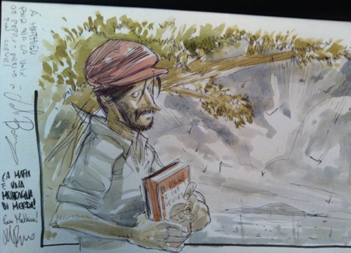 Diego e Roberto, nel frattempo, hanno scritto delle cose giuste e in maniera come al solito chiara e intelligente. Personalmente, mi permetto di sottolineare che la mia esperienza potrebbe essere viziata da due fattori: ero ospite della casa editrice Ankama per la promozione di Mafia Tabloids ed era la mia prima volta ad Angouleme. Quindi potrei essere influenzato dall’ottima esperienza dal punto di vista umano, grazie all’attenzione dello staff Ankama, composto da gente giovane, dinamica e in gamba come gli amici Audrey Bonnemaison e Olivier Jalabert e i prodigiosi Marie, Marion e Max. E grazie a Viktor Kalvachev e sua moglie Ivana e a un più siculoamericano che mai Brian Azzarello che hanno reso le serate indimenticabili come fossero rimpatriate tra vecchi amici. Come del resto lo è Claudio Stassi, che nonostante le sfortune che lo hanno tormentato in questa fiera, come sempre teneva il sorriso tra le labbra.