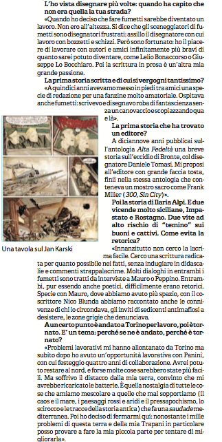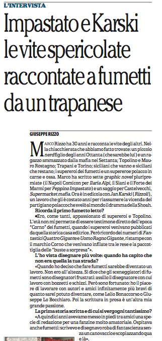 Il 15, il giorno della sentenza Rostagno, è apparsa su Repubblica (edizione di Palermo) un’intervista che avevo rilasciato a Giuseppe Rizzo ormai qualche settimana fa. Ve la ripropongo. Si parla di Jan Karski, delle mi ispirazioni e della mia esperienza. E di questa terra maledetta e benedetta.